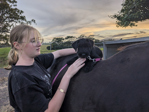 Sire of this litter is Klabauter Quantum Leap, a son of our imported "Yakir Black Grand Calvera (IMP CZE)" - callname "Yoyo". This is Klabauter Cracker Black's last litter before her retirement.